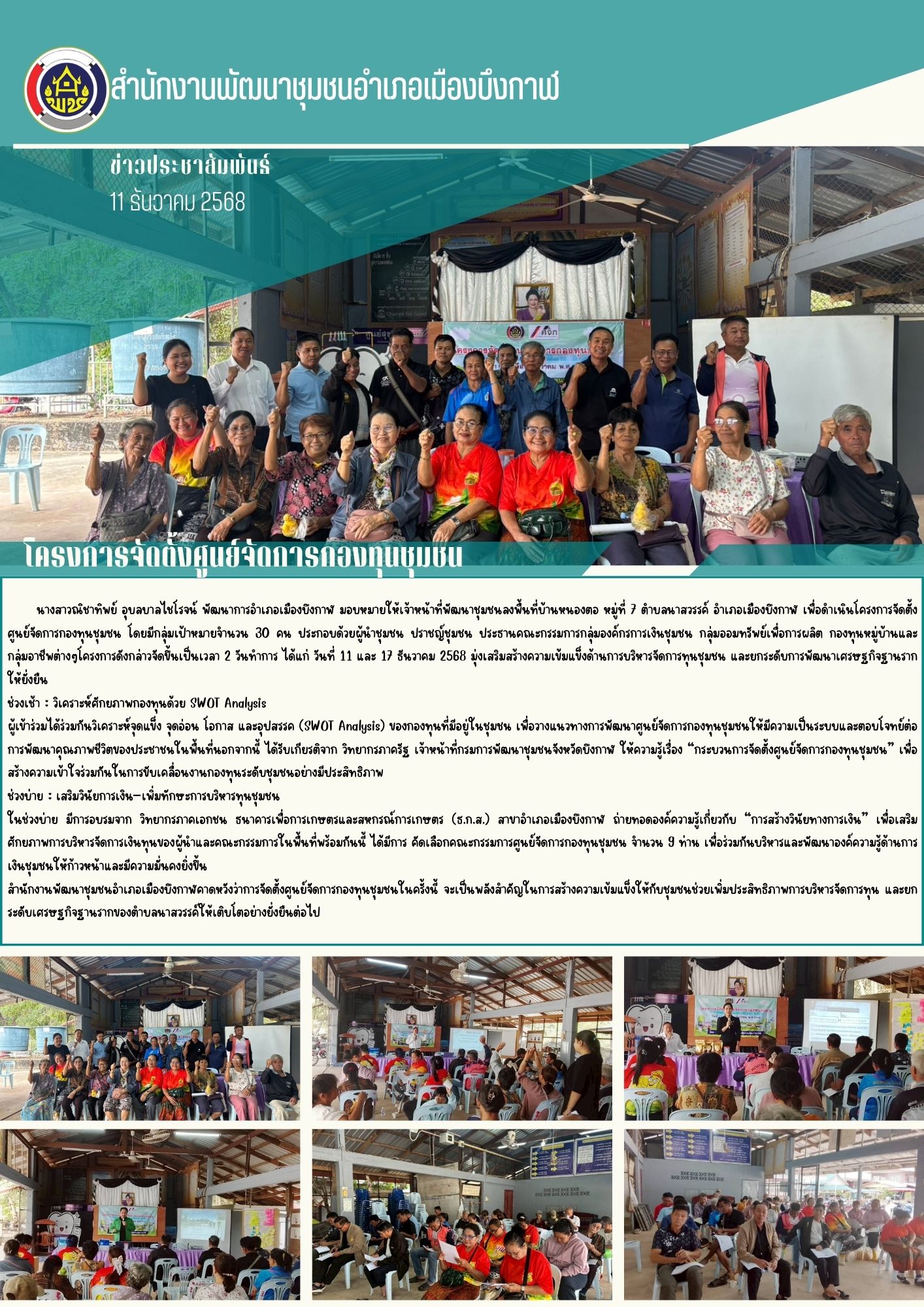 สพอ.เมืองบึงกาฬ ขับเคลื่อน “ศูนย์จัดการกองทุนชุมชน” บ้านหนองตอ หนุนเสริมวินัยการเงิน–พัฒนาศักยภาพผู้นำ สร้างฐานรากเศรษฐกิจชุมชนเข้มแข็ง